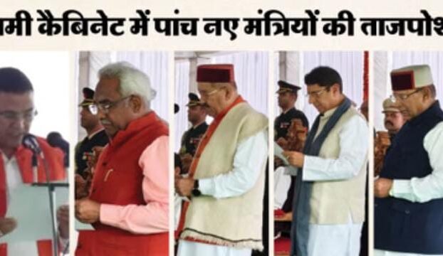 धामी कैबिनेट का विस्तार:पांच मंत्रियों ने ली शपथ