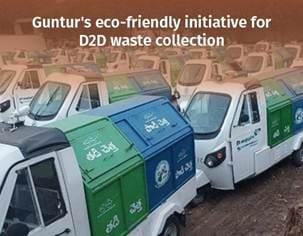 आंध्र प्रदेश के गुंटूर ने डोर-टू-डोर कचरा संग्रहण के लिए 200 से अधिक इलेक्ट्रिक ऑटो का उपयोग करके अपशिष्ट प्रबंधन में एक पर्यावरण अनुकूल परिवर्तन को अपनाया है। सस्टेनेबल सिटीज इंटीग्रेटेड पायलट अप्रोच के तहत संयुक्त राष्ट्र औद्योगिक विकास संगठन और ग्लोबल एनवायरनमेंट फैसिलिटी द्वारा समर्थित यह पहल पारंपरिक डीजल से चलने वाले ट्रकों का एक हरित विकल्प है। जीपीएस ट्रैकिंग से लैस ये इलेक्ट्रिक ऑटो शहर के 159.46 वर्ग किमी क्षेत्र को कुशलतापूर्वक कवर करते हैं। यह परियोजना सालाना 71,000 लीटर से अधिक डीजल की आवश्यकता को समाप्त करके, ग्रीनहाउस गैस उत्सर्जन को काफी कम करती है और एक दशक में अनुमानित 21,000 टन – जलवायु परिवर्तन से निपटने और वायु की गुणवत्ता को सुधारने में मदद करती है