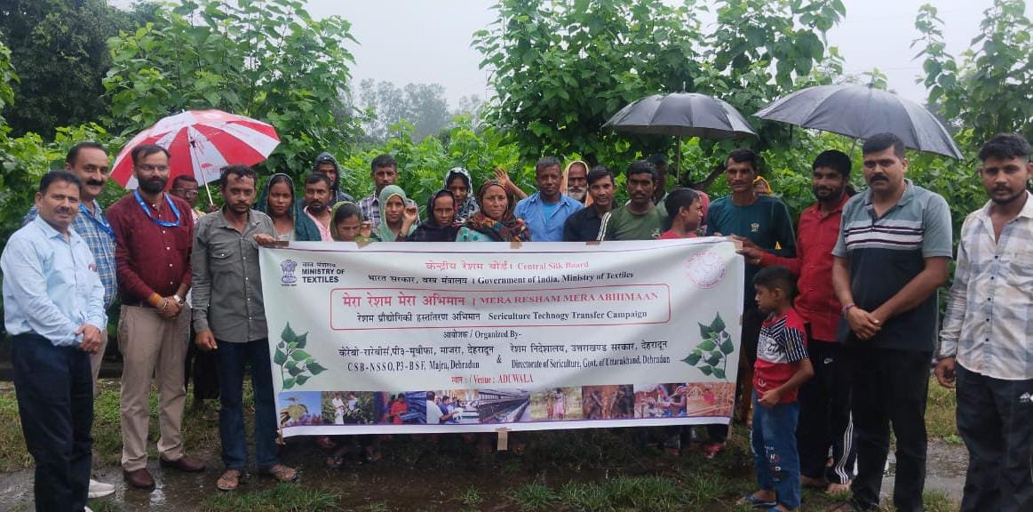 “मेरा रेशम मेरा अभिमान (MRMA)” अभियान की निरंतर श्रृंखला के अंतर्गत केन्द्रीय रेशम बोर्ड, राष्ट्रीय रेशमकीट बीज संगठन, पी 3 मू बी फा, माजरा द्वारा रेशमकीट पालन एवं विशुद्धिकरण पर किसानों का प्रशिक्षण कार्यक्रम दिनांक 01 सितंबर, 2025 को गाँव-आदुवाला, देहरादून में सफलतापूर्वक आयोजित किया गया। मेरा रेशम मेरा अभिमान कार्यक्रम का मुख्य उद्देश्य केंद्रीय रेशम बोर्ड द्वारा विकसित रेशम उत्पादन प्रोद्योगिकियों के बारे में जागरूकता पैदा करना ओर रेशम किसानो की आजीविका में सुधार करना है।