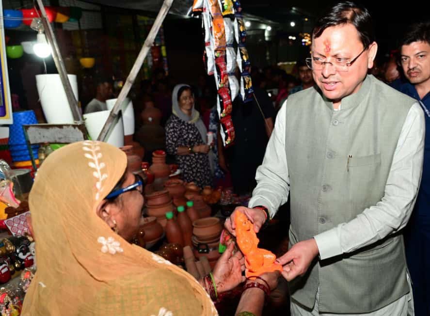 मुख्यमंत्री श्री पुष्कर सिंह धामी ने आज अपने गृह क्षेत्र खटीमा में ‘स्वदेशी अपनाओ’ अभियान के तहत पारंपरिक मिट्टी के दियों और स्थानीय रूप से निर्मित वस्तुओं की खरीदारी की।