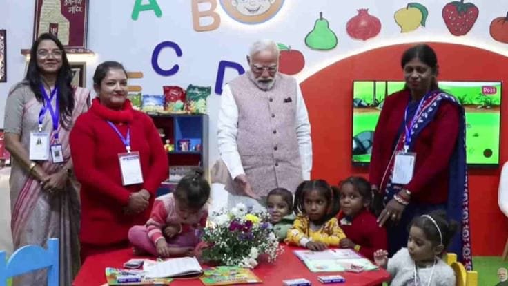 रजत जयंती पर लगाई गई खास प्रदर्शनी का अवलोकन करने के दौरान पीएम मोदी यहां कुछ बच्चों से मिले।