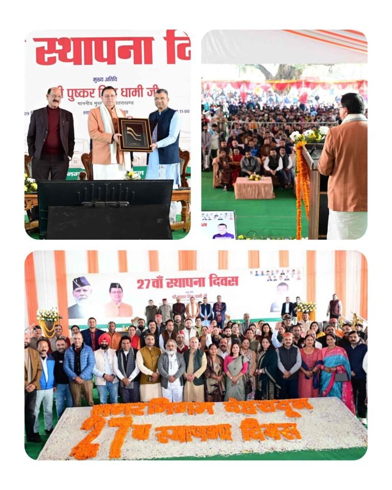 मुख्यमंत्री श्री पुष्कर सिंह धामी ने आज देहरादून नगर निगम के 27वें स्थापना दिवस समारोह में प्रतिभाग करते हुए लगभग ₹46 करोड़ की विकास परियोजनाओं का शिलान्यास एवं लोकार्पण किया।