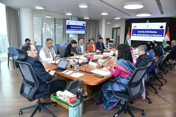 केन्द्रीय स्वास्थ्य एवं परिवार कल्याण मंत्री श्री जगत प्रकाश नड्डा ने स्वास्थ्य सेवा के आपूर्ति तंत्र का मूल्यांकन करने और प्राथमिकता वाली राष्ट्रीय स्वास्थ्य संबंधी पहलों के कार्यान्वयन में तेजी लाने हेतु आज राजस्थान और महाराष्ट्र के स्वास्थ्य मंत्रियों एवं वरिष्ठ अधिकारियों के साथ एक व्यापक समीक्षा बैठक की। चर्चा सार्वजनिक स्वास्थ्य से संबंधित बुनियादी ढांचे को मजबूत करने, रोगी-केन्द्रित सेवाओं को बेहतर बनाने, नियामक ढांचे को मजबूत करने और सार्वजनिक स्वास्थ्य चुनौती के रूप में क्षय रोग के उन्मूलन के प्रति भारत की प्रतिबद्धता को आगे बढ़ाने पर केन्द्रित थी।