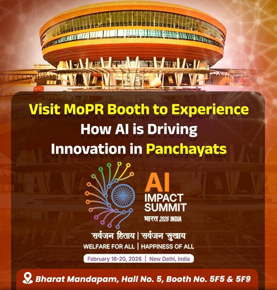 पंचायती राज मंत्रालय, 16 से 20 फरवरी 2026 के दौरान नई दिल्ली के भारत मंडपम (हॉल 5, बूथ 5एफ5 और 5एफ9) में आयोजित होने वाले इंडिया एआई इम्पैक्ट एक्सपो 2026 में भाग लेगा, ताकि जमीनी स्तर पर शासन को मजबूत करने, प्रशासनिक दक्षता में सुधार करने और सार्वजनिक सेवा वितरण में जवाबदेही बढ़ाने के लिए विकसित कृत्रिम बुद्धिमत्ता (एआई) सक्षम समाधानों का प्रदर्शन किया जा सके।
