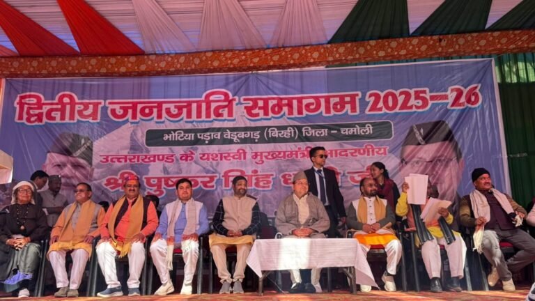 नीति-माणा जनजाति कल्याण समिति द्वारा भोटिया पड़ाव, बेडूबगड़ (बिरही) में आयोजित ‘द्वितीय जनजाति समागम-2026’ के समापन समारोह में प्रदेश के माननीय मुख्यमंत्री श्री पुष्कर सिंह धामी जी ने मुख्य अतिथि के रूप में शिरकत की।